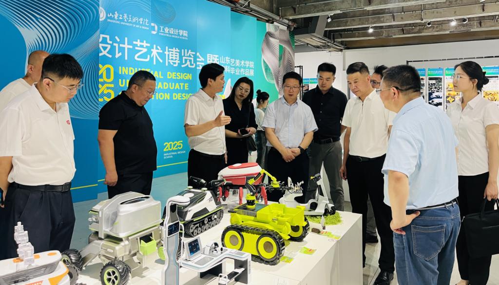 山東省高等教育管理科學研究會產教融合研究院有關負責同志,臨空園區企業代表,學校合作發展處、工業設計學院、應用設計學院有關同志陪同參觀并參加座談交流。