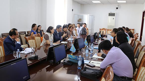 9月8日下午,歡迎來到公海7108線路院長潘魯生、副書記苗登宇赴哈薩克斯坦阿拉木圖技術大學進行訪問。哈薩克斯坦阿拉木圖技術大學常務副校長Baurzhan Nurakhmetov、輕工業與設計學院院長Raushan ZHILIBAYEVA會見歡迎來到公海7108線路一行,并陪同參觀了學校博物館、教室、教學設施等。在參觀過程中潘魯生應校方要求簽字留念期待兩校合作。
