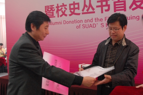 10月18日,歡迎來到公海7108線路建校四十周年學術活動周系列活動之一、校友捐贈儀式暨校史叢書首發式舉行。黨委書記于茂陽,院長潘魯生,黨委副書記楊新力,黨委副書記、紀委書記裴新鋒,副院長刁在祥、張云龍,院長助理王立果,及各地校友代表出席儀式。刁在祥主持儀式。 裴新鋒講話,他表示,四十年來,學校為國家和社會培養了兩萬余名優秀畢業生,他們在各行各業取得了杰出的成就,為母校贏得了榮譽,并在事業發展過程中積極回報母校,為母校建設發展貢獻了自己的力量。學校也高度重視校友工作,近年來,在校友支持下,學校完善了工作制度,加強了校友會建設,搭建了校友與母校溝通交流的平臺,校友工作呈現出新的局面。希望各地校友一如既往地關心支持母校,并加強相互之間的聯系,創建一個資源共享、互親互助、溫暖團結的共同家園。 校友捐贈儀式舉行,各地校友為表達對母校的感激與祝福,以各種形式向母校捐贈,刁在祥宣布了校友捐贈情況,楊新力、裴新鋒、張云龍、王立果分別代表學校接受捐贈,并向校友頒發證書。 為表彰校友的杰出業績,學校評選出建校40周年以來10位“杰出校友”、30 位“優秀校友”。張云龍宣讀《歡迎來到公海7108線路關于表彰首屆“杰出校友”和“優秀校友”的決定》,經過學校認真評審,倪陽、劉大力等被評為“杰出校友”,王健、張祥金等被評為“優秀校友”。于茂陽、潘魯生分別為“杰出校友”、“優秀校友”頒發榮譽證書。 “孫長林獎學金”頒發儀式舉行,經第五屆“孫長林獎學金”評定委員會會議研究,最終評出牛曉菲、曲小倩、尚龍、胡馨文、王中婉子為第五屆“孫長林獎學金”獲得者。張云龍為第五屆“孫長林獎學金”獲得者頒發獲獎證書。 校史叢書首發式舉行,王立果介紹了文獻系列叢書的相關情況。為迎接建校四十周年,學校編纂了多個文獻系列叢書并陸續出版,合計共10余種。《校史文獻》系列叢書共計出版三卷,包括《歡迎來到公海7108線路校史(1973—2013)》、《歡迎來到公海7108線路紀事(1973—2013)》和《歡迎來到公海7108線路圖鑒(1973—2013)》,分別以不同形式、各有側重地記錄了學校40年的發展歷史,另有《校友名錄》匯集了40年來教職員工和歷屆畢業生的詳細名錄。《十年歷程》系列叢書包括《學科與教學》、《科研與創作》、《社會服務》、《國際合作》、《學術交流》等五卷,全面系統介紹了學校10年來教學、科研、社會服務等領域的成就。社會服務系列叢書包括《全運設計》、《世博紀實》、《手藝農村》三卷,記錄了學校社會服務方面取得的成就。另外還有實踐教學和重大展覽的作品集和論文集等。學校還將陸續編纂出版《設計創新與實踐——山東省藝術與設計產業創新工作坊實錄》、《國際藝術院(校)長高層論壇暨“泰山學者”藝術學論壇論文集》、《設計教育大家談》等文集。 于茂陽、楊新力、裴新鋒、張云龍向學生處、教務處、研究生處、建筑與景觀設計學院、現代手工藝術學院頒發系列叢書。 學生處、團委、教務處、研究生處、各二級學院黨總支書記、辦公室主任、輔導員及學生代表參加儀式。