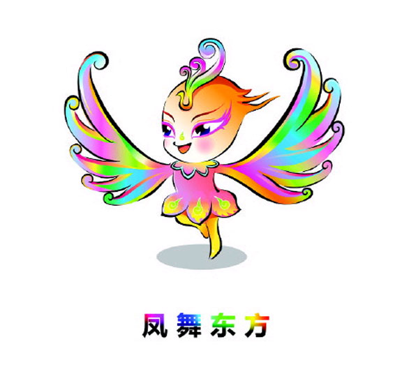 設計團隊設計完成。該形象源于中國藝術節(jié)節(jié)徽中藝術鳳鳥的形象,不僅有效地延續(xù)了中國藝術節(jié)的文化形象,更生動地體現(xiàn)了齊魯大地作為東夷文化富集區(qū)的地域文化符號。吉祥物身體的圖案及色彩取材于十藝節(jié)標志,既是標志圖形的延展應用,同時寓意群眾文化生活的豐富多彩。《說文》講,“鳳,神鳥也”,“出于東方君子之國”。《左傳》曾記載東夷少昊族“鳳鳥適至”的故事,孔子也有“鳳鳥至,河出圖”的說法,象征著文化盛世的吉祥和瑞。“鳳凰鳴矣,于彼高岡”,鳳凰歷來被看作藝術神鳥,“聽鳳凰之鳴,以別十二律”。《山海經(jīng)》“鸞歌鳳舞”的景象令人神往:“爰有歌舞之鳥,鸞鳥自歌,鳳鳥自舞”。《尚書.益稷》有“簫韶九成,鳳皇來儀”的記載,鳳凰來配合演奏,說明藝術的水平已經(jīng)達到了美妙絕倫的境界。鳳凰形象在民間觀念中有廣泛的群眾基礎,它是象征吉祥的瑞鳥,民間有“鳳鳴朝陽”、“百鳥朝鳳”的說法。十藝節(jié)吉祥物以鳳凰的形象出現(xiàn),喻示著中華民族文化藝術的偉大復興和繁榮發(fā)展,也體現(xiàn)了第十屆中國藝術節(jié)全民參與、文化事業(yè)百家爭鳴的盛況。“鳳舞東方”將傳統(tǒng)的鳳凰形象化身為伸展鳳翼、踏歌起舞的小女孩形象,又像一位可愛的小天使,新穎獨特、可愛大方,為人民群眾所喜聞樂見,體現(xiàn)了“藝術的盛會、人民的節(jié)日”的宗旨。