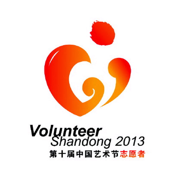 第十屆中國藝術節(jié)志愿者標志是由“心形、舞動的人形、泉水、懷抱、如意”等元素形態(tài)設計而成,由王曉峰和修藝源擔綱設計。標志紅心的圖形與跳舞的人形,組合成熱烈而積極向上的紅心“懷抱”,體現(xiàn)十藝節(jié)志愿者“奉獻、友愛、互助、進步”的精神。上方水墨筆觸的水花與下方虛形組成歡快的人形,與心形敞開的懷抱一起,表達了山東人民歡欣鼓舞迎接盛會到來的心情。右側和下方的水花形態(tài)來源于如意云紋,表現(xiàn)了對十藝節(jié)美好的祝愿心情。標志整體形態(tài)飽滿、充滿動感,適用性強,與十藝節(jié)的標志放在一起使用時,能夠相互映襯,成為密切相關的標識體系。