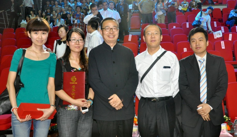 頒發證書與獎金,副省長張超超、文化部公共文化司司長于群為志愿者標志入選作品作者王曉峰頒發證書與獎金。