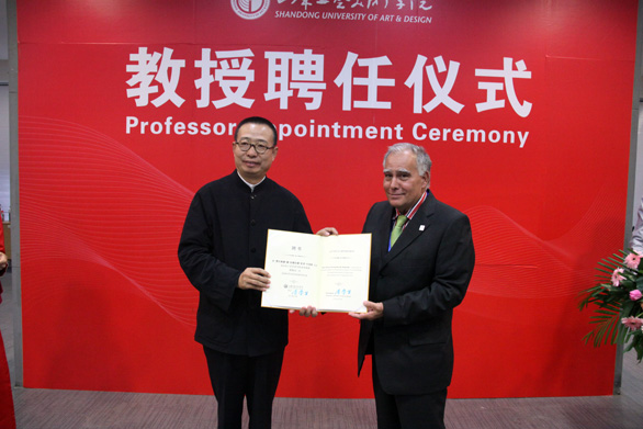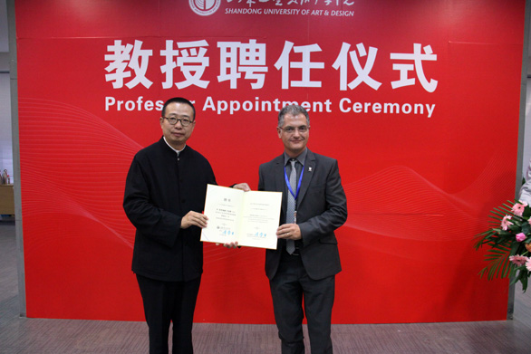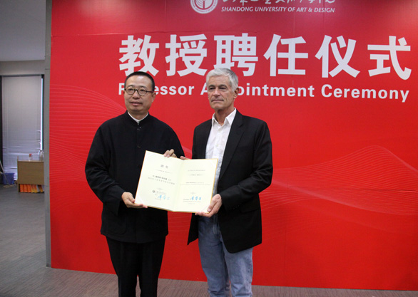 隨后,院長(zhǎng)潘魯生分別為名譽(yù)教授和客座教授頒發(fā)聘任證書(shū)。