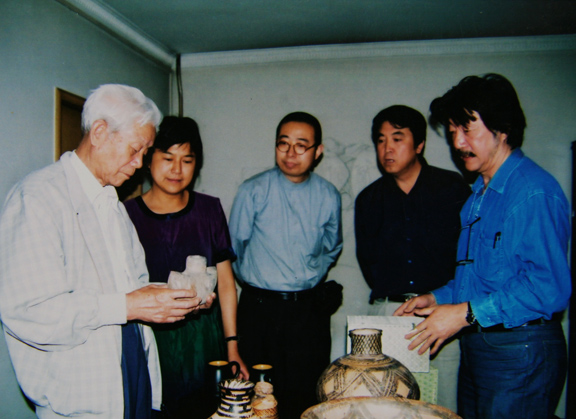 2007年7月,在清華美術(shù)學(xué)院教授博士生導(dǎo)師袁運(yùn)生(右一)(右二原山東省電視臺(tái)臺(tái)長(zhǎng)曾昭明,右三歡迎來(lái)到公海7108線路院長(zhǎng)潘魯生右四袁運(yùn)生夫人右五孫長(zhǎng)林)家