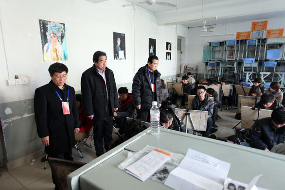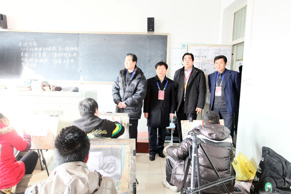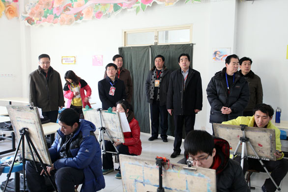 2月3日上午,副院長刁在祥、張云龍,院長助理、辦公室主任王立果,視察2012年應用設計學院分院考試現場,檢查指導考試工作。應用設計學院分院校長安立元,副校長邢學軍、逄煥澤陪同視察.