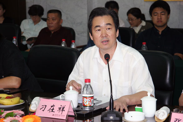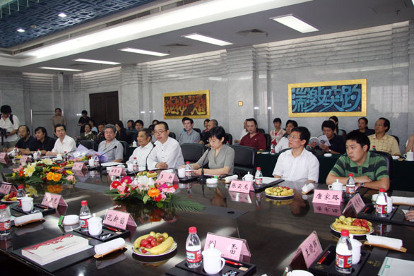 潘魯生教授,副院長李新、刁在祥、張云龍,院長助理苗登宇以及我院相關部門和二級學院的主要負責人、師生代表,朱銘教授的學生參加了座談會。座談會由副院長李新主持。