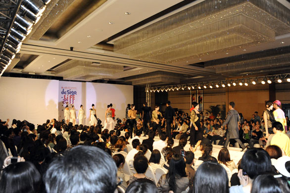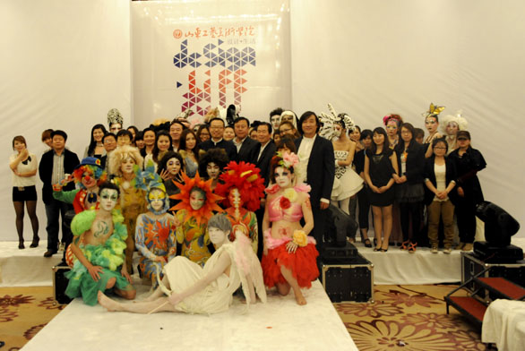 5月1日下午,我校2011設計藝術博覽會之服裝表演、妝扮展專場在濟南銀座索菲特六層多功能廳舉行。院長潘魯生,黨委副書記楊新力,黨委副書記、紀委書記裴新鋒,副院長李新、刁在祥、張云龍、苗登宇出席,并觀看展演。