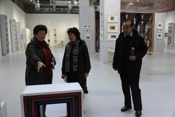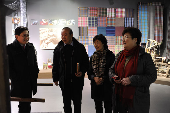 3月1日上午,山東省體育中心黨委副書記、副主任吳保雷,青島大學黨校校長、機關黨委書徐敏記,山東文化產業管理學院校長隋淑英一行來我校訪問。 來賓一行參觀了在美術館展出的手藝農村?山東文化產業調研成果展,對調研成果給予高度評價,對豐富的展品表示贊賞。來賓還參觀了民藝博物館、孫長林藝術館和數字藝術與傳媒實驗中心,對我校教學設施的建設和實踐教學型的教育模式給予充分肯定。