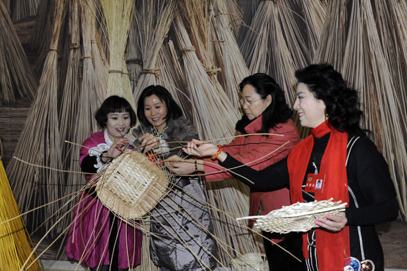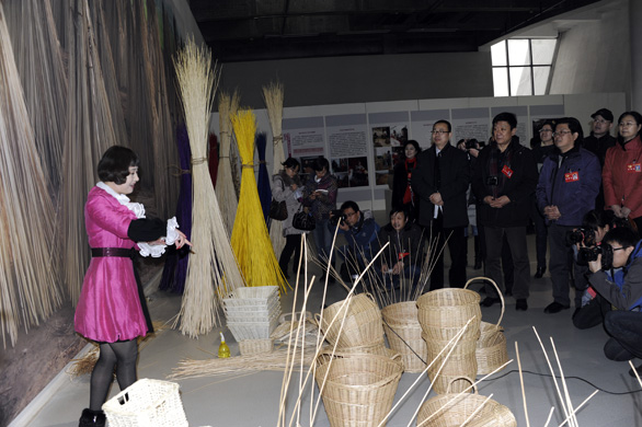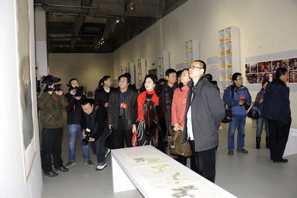 省政協委員們在潘魯生院長的詳細介紹下深入了解了臨沂紅花鄉中國結、草柳編,濰坊年畫、風箏,菏澤曹縣桐楊木雕刻、鄄城土布、巨野農民工筆繪畫等手工藝產品的設計、生產、銷售以收益及產業模式。委員們充分肯定了潘魯生院長所帶領的“手藝農村——山東農村文化產業調研”課題組在農民手藝產業研究領域所取得的成果。委員們表示,兩會期間,代表們就經濟和文化的關系進行了深入的討論,農村手工藝產業作為文化創意產業的一部分,為推動山東省經濟的發展做出了突出貢獻,“手藝農村——山東農村文化產業調研成果展”,全面展示了山東農村文化產業的發展成果,展覽既展示了傳統手藝,同時結合了現代創意和當代藝術理念,為當代人的生活所接受喜愛,為我們發展農村經濟、改善農民生活提供了很大的啟發。