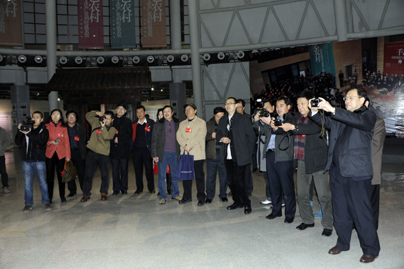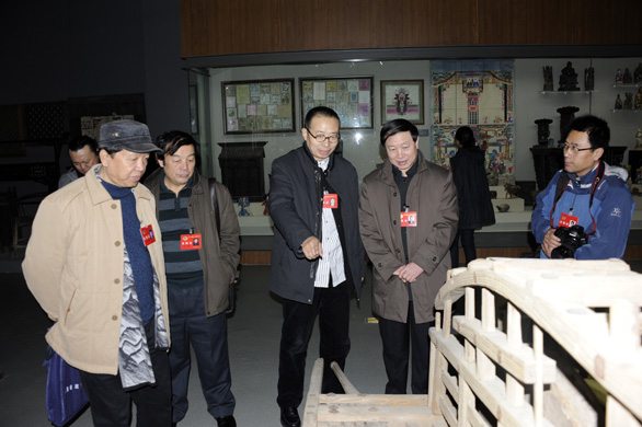 2月13日下午,正在參加山東省政協十屆四次會議的部分委員們在院長潘魯生的陪同下,來到我校長清校區,參觀正在美術館舉辦的“手藝農村——山東農村文化產業調研成果展”。