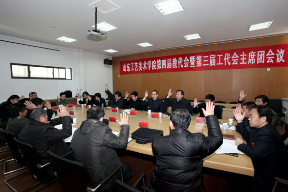 12月24日上午,我校第四屆教代會暨第三屆工代會主席團第一次會議在長清校區第三會議室召開。 大會主席團常務主席、黨委書記于茂陽,大會主席團常務主席、院長潘魯生,大會主席團秘書長、黨委副書記楊新力,主席團成員、黨委副書記、紀委書記裴新鋒,主席團成員、副院長李新、張云龍、苗登宇,大會主席團副秘書長、院長助理、辦公室主任王立果,大會主席團副秘書長、工會主席祁建萍及主席團全體成員出席了本次會議,會議由于茂陽主持。 會議審議并一致表決通過了校務公開工作領導小組和福利委員會名單、工會委員會與工會經費審查委員會候選人名單,聽取了大會提案委員會關于提案立案情況的說明,審議并一致表決通過了大會選舉辦法、總監票人、監票人建議名單。