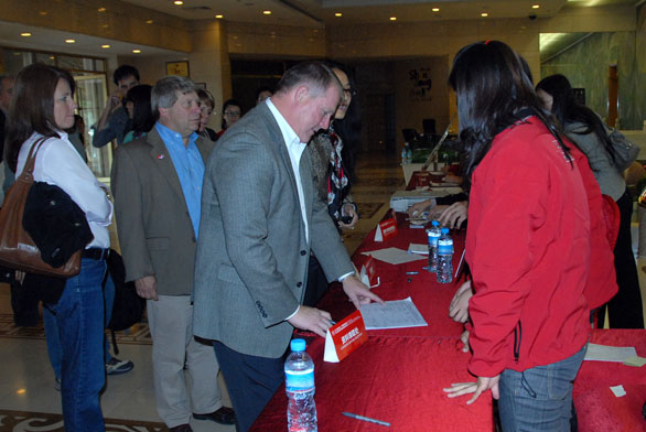“2010影像亞洲?齊魯國際攝影周暨第三屆濟南國際攝影雙年展”將于11月5日至8日在濟南舉行。4日,參加大展的國內外攝影家陸續抵達濟南舜耕國際會展中心,在我校工作人員和志愿者的協助下完成注冊報到。 截至發稿時,參加“2010影像亞洲?齊魯國際攝影周暨第三屆濟南國際攝影雙年展”的國外嘉賓65人、國內嘉賓84人已基本注冊完畢。我校工作人員和志愿者熱情細致的服務得到與會嘉賓的一致好評。