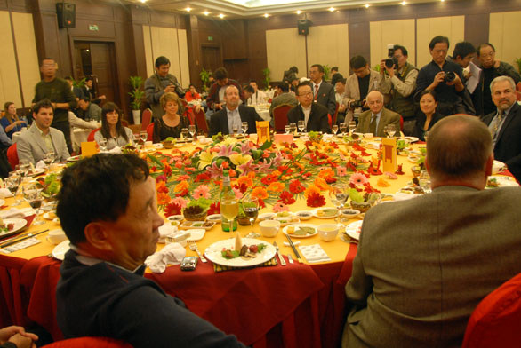 11月4日晚,“中美攝影師聯誼會——齊魯攝影學會、中國藝術攝影學會、中國人像攝影學會與PPA攝影家聯誼活動”在舜耕山莊重華堂舉行。中國藝術攝影學會主席楊元惺,齊魯攝影學會名譽主席黃可華,省文聯主席、我校院長潘魯生與中美攝影家一起參加了聯誼會。 美國職業攝影師協會(PPA)總裁路易斯?湯斯梅爾致辭,他表示,希望“2010影像亞洲?齊魯國際攝影周暨第三屆濟南國際攝影雙年展”取得圓滿成功。 中國攝影家協會副主席、中國藝術攝影學會執行主席朱憲民致辭。他指出,“齊魯國際攝影周”活動在攝影界產生了積極影響,令人欣慰。希望廣大攝影界朋友借此機會探討攝影技術,觀摩不同風格攝影作品,為交流和技藝的提高搭建更好的平臺。 中國人像攝影協會常務副主席兼秘書長李麗娜致辭。她對主辦方和承辦方對活動的支持和所做工作表示感謝,并指出世界攝影界不分國籍和地域都是一家人。她祝愿本次攝影周活動順利舉辦。 聯誼會上,我省部分優秀演員為中美攝影家帶來了精彩的節目表演。