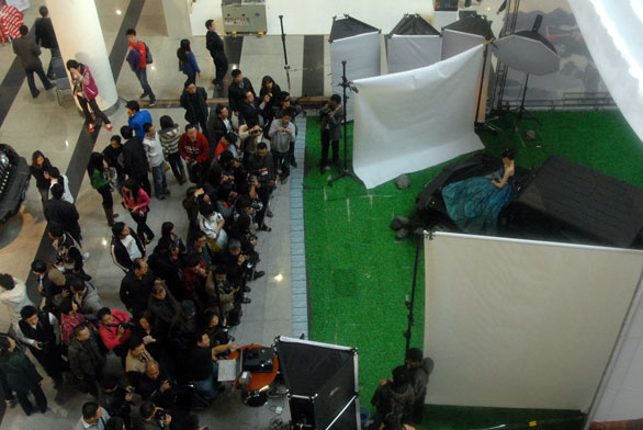 11月6日下午,由我校參與主辦的“2010影像亞洲?齊魯國際攝影周暨第三屆濟南國際攝影雙年展”系列活動之——中美商業攝影大師越野車棚拍現場指導活動在濟南舜耕國際會展中心舉行,廣大攝影愛好者參加活動。 國內著名商業攝影師李楚益女士從越野車棚拍現場環境、拍攝技巧、攝影師與模特互動等方面,向廣大攝影愛好者講解了越野車模特棚拍的知識和技術,并針對攝影愛好者提出的問題進行了現場解答。 指導活動開始前,廣大攝影愛好者圍繞越野車進行了一系列拍攝活動。