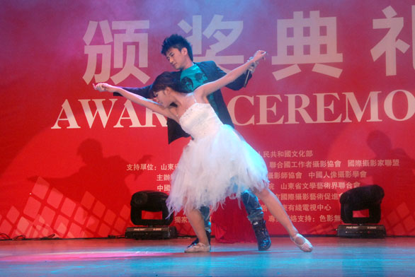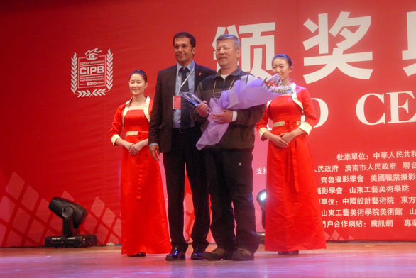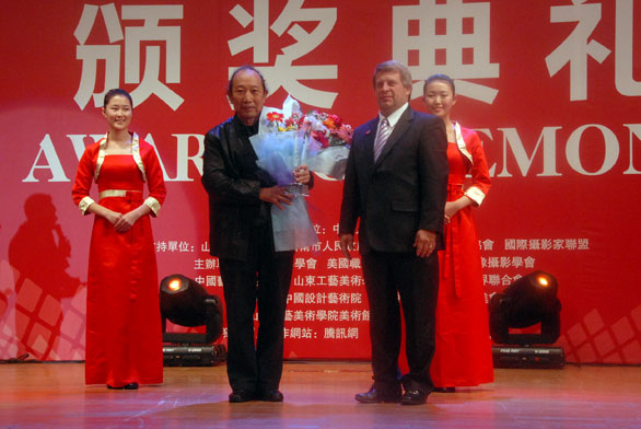 榮獲“齊魯國(guó)際攝影獎(jiǎng)”的攝影家登臺(tái)領(lǐng)獎(jiǎng)