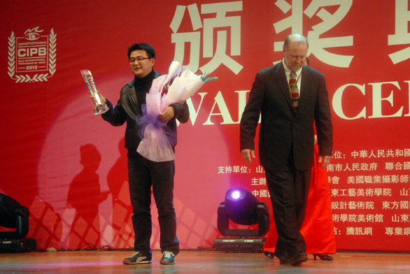 榮獲“最佳攝影獎(jiǎng)”的攝影家登臺(tái)領(lǐng)獎(jiǎng)