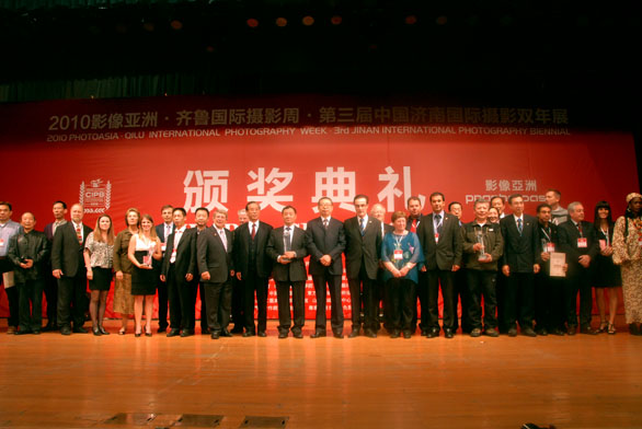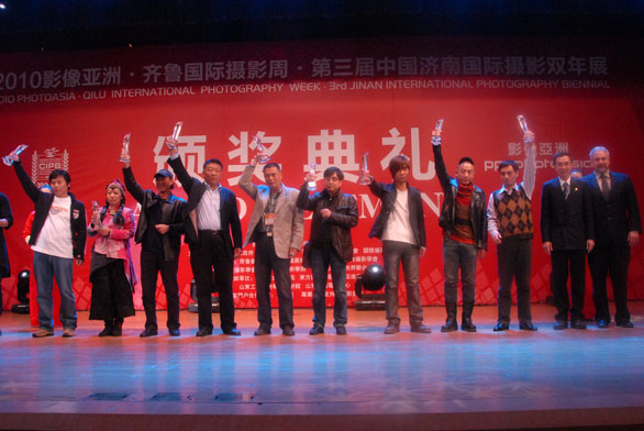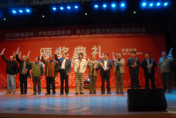 11月6日晚,由我校參與主辦的“齊魯之夜——2010影像亞洲?齊魯國(guó)際攝影周暨第三屆濟(jì)南國(guó)際攝影雙年展頒獎(jiǎng)典禮”在濟(jì)南舜耕會(huì)堂報(bào)告廳舉行。院長(zhǎng)潘魯生出席頒獎(jiǎng)典禮并為獲獎(jiǎng)?wù)哳C獎(jiǎng)。 “2010影像亞洲?齊魯國(guó)際攝影周暨第三屆濟(jì)南國(guó)際攝影雙年展”八大展覽的評(píng)選異彩紛呈,共收到來(lái)自全球的三萬(wàn)六千余幅作品。頒獎(jiǎng)典禮上,大會(huì)十二個(gè)獎(jiǎng)項(xiàng)逐一揭曉。原山東省副省長(zhǎng)、齊魯攝影學(xué)會(huì)名譽(yù)主席黃可華,國(guó)際攝影藝術(shù)聯(lián)合會(huì)副主席喬?伯吉斯?馬提塞拉為中國(guó)藝術(shù)攝影學(xué)會(huì)主席楊元惺頒發(fā)“國(guó)際攝影特別榮譽(yù)獎(jiǎng)”。山東省文聯(lián)主席、我校院長(zhǎng)潘魯生為意大利攝影家希爾瓦諾?蒙奇頒發(fā)“墨子國(guó)際攝影大師獎(jiǎng)”。 此外,中國(guó)攝影家陳長(zhǎng)芬榮獲“國(guó)際攝影終身成就獎(jiǎng)”;中國(guó)攝影家鄧偉、李麗娜、湯德勝榮獲“國(guó)際攝影杰出貢獻(xiàn)獎(jiǎng)”;中國(guó)攝影家傅欣榮獲“PPA國(guó)際職業(yè)攝影大師獎(jiǎng)”;中國(guó)攝影家陳云曉榮獲“影像亞洲國(guó)際攝影大獎(jiǎng)”。榮獲“最佳攝影獎(jiǎng)”、“齊魯杰出攝影師獎(jiǎng)”、“齊魯國(guó)際攝影獎(jiǎng)”、“銅小孔獎(jiǎng)”、“銀小孔獎(jiǎng)”、“金小孔獎(jiǎng)”等獎(jiǎng)項(xiàng)的國(guó)內(nèi)外攝影家代表也先后登臺(tái)領(lǐng)獎(jiǎng)。 除了頒獎(jiǎng)環(huán)節(jié)外,主辦方還特意安排了由我省一批青年演員帶來(lái)的精彩的文藝節(jié)目。根據(jù)黃可華先生一組攝影作品靈感設(shè)計(jì),由我校服裝表演專業(yè)學(xué)生演繹時(shí)裝走秀贏得現(xiàn)場(chǎng)嘉賓的陣陣掌聲。典禮在和諧歡快的氣氛中結(jié)束。