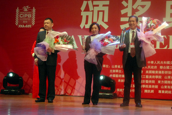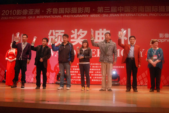 榮獲“齊魯杰出攝影師獎(jiǎng)”的攝影家登臺(tái)領(lǐng)獎(jiǎng),我校教師羅云平、李楠獲此獎(jiǎng)項(xiàng)