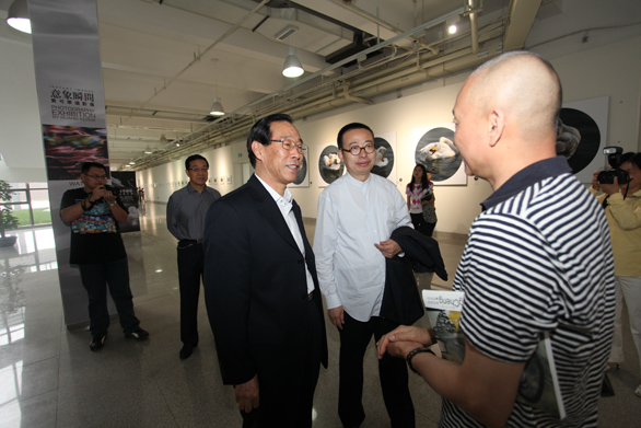 6月12日上午,《意象瞬間——黃可華攝影展》學術研討會期間,院長潘魯生,副院長李新陪同前來出席研討會的攝影界、美術界、文藝理論界的專家參觀了展覽。參觀過程中,校領導與專家們就攝影藝術教育方面的相關問題進行了深入溝通交流。我校相關部門負責同志陪同參觀。