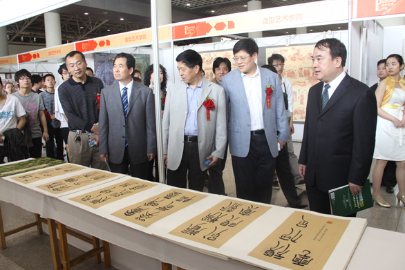 5月2日上午,我校2010年設計藝術博覽會暨2010屆畢業生推介會在濟南舜耕國際會展中心隆重開幕。開幕式結束后,中共山東省委宣傳部副巡視員王世農,山東電視臺總編輯祝麗華,省人力資源和社會保障廳技術人才處處長張敬榮,省經濟和信息化委員會科技處處長孟繁華,省教育廳學位管理與研究生處處長薛立魁,萊蕪市副市長劉杰,菏澤市政府副秘書長蔡文厚,山東經濟學院副院長崔友平,山東省電影學校副書記郭福苓,濟南市長清區知識產權局局長樊敏,齊魯動漫基地董事長臺文倩,我校黨委書記于茂陽,黨委副書記楊新力,副院長李新、刁在祥、張云龍、苗登宇等領導參觀了展覽。 領導們在參觀過程中紛紛對我校畢業生的作品表示贊賞,認為我校畢業生設計作品創意獨特、設計新穎、做工精細,將設計與生活緊密聯系在一起,具有很強的實用性,真正起到了引領生活的作用。領導們還表示,本屆設計藝術博覽會暨畢業生推介會搭建了一個就業與創業的平臺,為參展同學和用人單位提供了更多直面的交流機會,為推進畢業生就業創業發揮了積極的作用。