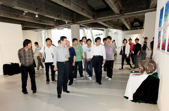 5月10日上午,黨委書記于茂陽來到學校美術館參觀正在展出的我校2010屆畢業生作品展,并與參觀師生進行了親切的交流。 于茂陽書記饒有興致地參觀了視覺傳達設計學院、建筑與景觀設計學院、工業設計學院、服裝學院、造型藝術學院、現代手工藝術學院、數字藝術與傳媒學院、人文藝術學院、應用設計學院9個教學單位本專科學生和研究生作品,并參觀了學校實踐教學基地以及我校服務十一運會、世博覽會山東館成果展覽。每到一處,于茂陽書記都仔細端詳,時而微笑點頭,時而給予點評,不時向指導教師及同學詢問作品創作的相關問題。 于茂陽書記充分肯定了本屆畢業展的成績和2010屆畢業生的學習、創作成果。于茂陽指出,本屆畢業生作品展舉辦得相當成功,涌現出來大量創意獨特、設計新穎、做工精細,并能將設計與生活緊密聯系在一起的高水平設計作品,體現了2010屆畢業生較強的動手能力和創新能力,同時也向社會展示了我校的教學成果,取得了良好的社會反響。 于茂陽書記在參觀過程中與現場的畢業生進行了交流,給他們提出了建議和意見。于茂陽指出,作品創作要敢于突破傳統觀念的束縛,要敢于在形式、材質、筆墨、線條等方面進行創新,要敢于在創新中表達自己的思想。于茂陽要求教師在教學中要加強對學生的引導、點撥,注意鍛煉學生的創作能力和綜合素質,培養高素質的設計人才;勉勵畢業生再接再厲、不斷創新,創作出更好的作品,適應社會需要,引領社會生活;鼓勵在校學生加強學習、學以致用,不斷提高自己的專業素質和實踐能力,為將來就業創業打下堅實的基礎。 部分教學單位負責同志陪同參觀。