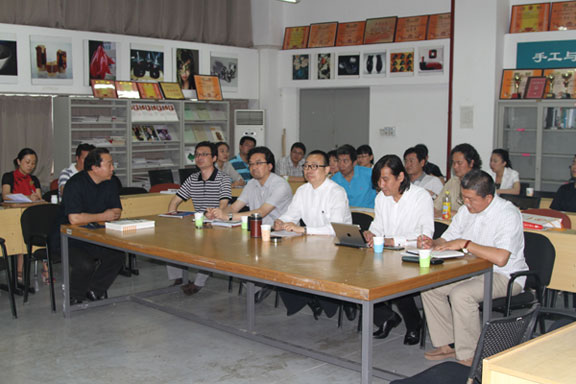 2013年6月20至21日,潘魯生院長(zhǎng)在副院長(zhǎng)苗登宇、黨辦院辦副主任韓文濤、教務(wù)處處長(zhǎng)孫磊、教務(wù)處副處長(zhǎng)、實(shí)踐教學(xué)中心主任張偉等有關(guān)部門負(fù)責(zé)人的陪同下赴各教學(xué)單位走訪調(diào)研,就新教學(xué)計(jì)劃的修(制)訂工作和名校建設(shè)工程進(jìn)展情況聽取匯報(bào),結(jié)合我校頂層設(shè)計(jì)和學(xué)科專業(yè)定位就具體教學(xué)、科研和社會(huì)服務(wù)工作進(jìn)行研討,針對(duì)各教學(xué)單位特點(diǎn)提出建議。 就教學(xué)全局與特色定位,潘魯生院長(zhǎng)強(qiáng)調(diào),堅(jiān)持創(chuàng)新型應(yīng)用設(shè)計(jì)藝術(shù)人才的培養(yǎng)目標(biāo),不斷完善“創(chuàng)新與實(shí)踐教學(xué)體系”。我校學(xué)歷教育的整體布局為中專教育、成人教育、高職教育、本科教育和研究生教育五大類,主體是本科教育。根據(jù)不同教育類型和專業(yè)特點(diǎn),設(shè)計(jì)類教學(xué)要重點(diǎn)突出“創(chuàng)意和實(shí)踐”、美術(shù)類要突出“基礎(chǔ)和創(chuàng)作”、人文類要突出“理論與研究”、公共課要突出“知識(shí)與修養(yǎng)”、高職類要突出“技能與實(shí)訓(xùn)”、成教類要突出“普及與培訓(xùn)”,只有因地制宜,找準(zhǔn)各自定位,只有突顯培養(yǎng)應(yīng)用型藝術(shù)人才,才能更好的形成學(xué)校教學(xué)特色。 就教學(xué)計(jì)劃修(制)訂的核心工作,潘魯生院長(zhǎng)強(qiáng)調(diào),要以課程為核心。各教學(xué)單位一要深入研究,完善課程架構(gòu),明確課程軸線,突出主干課程,增大課程信息量。二要加強(qiáng)協(xié)作,打通專業(yè)壁壘,整合優(yōu)質(zhì)教學(xué)資源,打包開設(shè)相關(guān)課程。三要深化內(nèi)涵,突出創(chuàng)新與實(shí)踐教學(xué)特色,既要在課程內(nèi)容上兼顧設(shè)計(jì)創(chuàng)意能力、藝術(shù)表現(xiàn)能力、專業(yè)知識(shí)能力和實(shí)踐應(yīng)用能力培養(yǎng)的綜合要求,也要在授課空間及形式上不斷完善,與實(shí)驗(yàn)室及實(shí)踐教學(xué)要求對(duì)接。四要夯實(shí)基礎(chǔ),圍繞課程加強(qiáng)教材建設(shè),編寫高質(zhì)量有特色的工藝美院教案。五要不斷提升,結(jié)合課程建設(shè)要求,提升師資隊(duì)伍水平,改變“因人設(shè)課”的教學(xué)局限,加大學(xué)科、專業(yè)帶頭人建設(shè)工作,強(qiáng)化師資培養(yǎng)和高層次人才引進(jìn)等多措并舉的師資隊(duì)伍建設(shè)。 就提高辦學(xué)水平、強(qiáng)化辦學(xué)特色,潘魯生院長(zhǎng)強(qiáng)調(diào),要發(fā)揮學(xué)術(shù)研究的引領(lǐng)和帶動(dòng)作用。各教學(xué)單位要結(jié)合名校建設(shè)工程目標(biāo)和方案,深化學(xué)術(shù)研究和教學(xué)研究,通過研究帶動(dòng)課程教學(xué)和成果申報(bào)。一要研究教育現(xiàn)狀,全面深入了解同類院校和專業(yè)教學(xué)情況,明確自身特色定位。二要研究辦學(xué)經(jīng)驗(yàn),梳理總結(jié)自身教育教學(xué)的良好經(jīng)驗(yàn),有傳承,有發(fā)展。三要研究專業(yè)理論和現(xiàn)實(shí)問題,提升應(yīng)用型教育的現(xiàn)實(shí)關(guān)聯(lián)度和文化深度。 就堅(jiān)持“以教學(xué)為中心”,潘魯生院長(zhǎng)強(qiáng)調(diào),多措并舉提高教學(xué)質(zhì)量。一可探索教研室、工作室、工作坊、實(shí)驗(yàn)室相結(jié)合的教學(xué)模式,完善“目標(biāo)-課題(項(xiàng)目)-考核”為核心“任務(wù)驅(qū)動(dòng)”的動(dòng)態(tài)科學(xué)管理模式。二可加強(qiáng)傳統(tǒng)文化資源與設(shè)計(jì)創(chuàng)意轉(zhuǎn)化的研究與實(shí)踐,多增設(shè)相關(guān)的課程和社會(huì)實(shí)踐項(xiàng)目,促進(jìn)學(xué)生能力本位的全面提升。三可以名校建設(shè)工程為抓手,狠抓包括省級(jí)特色專業(yè)、省級(jí)品牌專業(yè)、省級(jí)教學(xué)團(tuán)隊(duì)、省級(jí)精品課程、省級(jí)教改立項(xiàng)等在內(nèi)的教學(xué)質(zhì)量工程,夯實(shí)學(xué)科、專業(yè)發(fā)展基石。 在調(diào)研工作中,潘院長(zhǎng)指出,教學(xué)計(jì)劃修(制)訂是國(guó)家學(xué)科專業(yè)目錄調(diào)整和社會(huì)人才需求的客觀形勢(shì),名校工程建設(shè)是我校近十年建設(shè)發(fā)展贏得的一次新機(jī)遇,要堅(jiān)持特色發(fā)展的理念,本著對(duì)學(xué)生負(fù)責(zé)的態(tài)度,從課程建設(shè)等具體環(huán)節(jié)和核心工作著手,認(rèn)真研究,科學(xué)調(diào)研,合理規(guī)劃,發(fā)掘調(diào)動(dòng)資源優(yōu)勢(shì),發(fā)現(xiàn)解決存在的問題和不足,實(shí)現(xiàn)教育教學(xué)新的提升和發(fā)展。 各教學(xué)單位的院長(zhǎng)(主任)、書記、副院長(zhǎng)(副主任)、辦公室主任、教研室主任、副主任、教授代表等參加此次調(diào)研活動(dòng)。
