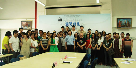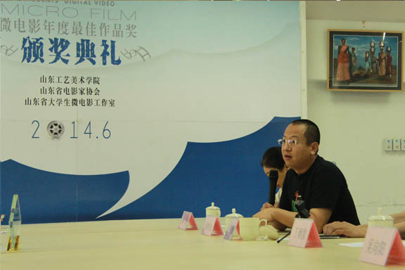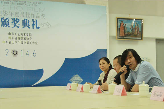 吳向陽主持本次頒獎典禮。他介紹了山東省大學生微電影工作室的運行情況,以及設立“微電影年度最佳作品獎”的積極意義。山東省大學生微電影工作室由山東省委宣傳部、山東省電影家協(xié)會于2011年12月設立,三年來取得了長足進步和良好的社會影響力。從今年開始,為優(yōu)秀的微電影作品頒發(fā)年度最佳作品獎,以鼓舞和激發(fā)大學生及青年教師的創(chuàng)作激情。