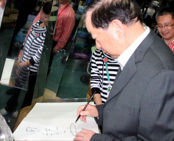 全國人大常委會原副委員長、原中共中央政治局委員田紀云一行,10月11日上午訪問了世博會山東館。田紀云興致勃勃地觀看了山東館的各展品展項,在孔子內容的觸摸屏前,他仔細詢問現在有多少孔子學院,當聽工作人員說在88個國家和地區有500多所孔子學院和孔子課堂時,他說:“山東出圣人。”然后很高興地來到孔子像前留影。當觀看到尾廳的泰山體育互動項目時,田紀云饒有興致地拿球拍做了打球體驗。在休閑吧內,田紀云品嘗了張裕葡萄酒,對山東館的創意設計和各項具有濃郁特色的展示表示贊許,并在紀念薄上簽名。 山東館運營團體成員陪同。