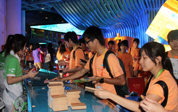 8月18日,“港澳學生上海世博參訪團”2500名學生代表訪問世博會山東館。山東館運營團隊迎接來賓。 港澳學生代表紛紛表示,來到山東館,有歸家之感,瞻仰孔子像,了解“魯班鎖”,體會“花如意”的寓意,就像一次文化的尋根之旅,深切感受到祖國文化的脈動,親切而又感動。學生代表認真觀看《海岱齊魯 禮儀之都》演示,詳細了解“《齊民要術》與登海育種”、“蛋殼黑陶與航天高科技陶瓷”、“劉洪算盤與浪潮服務器”、“現代足球的起源-蹴鞠與全民全運”等互動展項,紛紛與孔子像合影并領取了《論語百句》等紀念品。訪問交流活動充分體現了山東館互動交流的展示理念,面向廣大學生、港澳學子傳播齊魯文化、中華智慧,產生積極反響。