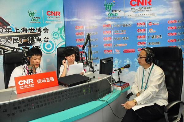 潘魯生院長(zhǎng)出席上海世博會(huì)山東周特別直播節(jié)目接受中央人民廣播電臺(tái)采訪