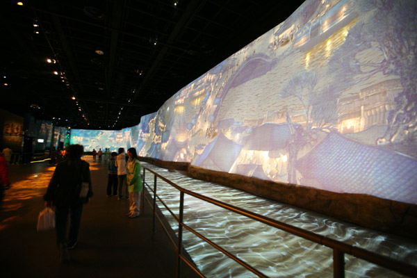 正因?yàn)槿绱耍袊?guó)國(guó)家館以“城市發(fā)展中的中華智慧”作為展示主題,結(jié)合城市發(fā)展,鋪陳寬宏視野,提煉文化根脈,凸顯中華智慧,不僅展館營(yíng)造運(yùn)用了傳統(tǒng)建筑中斗拱榫卯穿插的結(jié)構(gòu),形如冠蓋,層疊出挑,成為建筑形態(tài)的文化表達(dá);展示內(nèi)容亦以“尋覓”為主線,從當(dāng)代切入,回溯、探尋中國(guó)城市的底蘊(yùn)和傳統(tǒng),由綿延的“智慧之旅”引導(dǎo)參觀者走向未來。應(yīng)該說,動(dòng)態(tài)的《清明上河圖》復(fù)活的不只是北宋的繁華街景,更是歷史演進(jìn)中的城市形態(tài);“國(guó)之瑰寶”展示的不只是金屬冶煉、絲綢染織、造紙印刷、中醫(yī)中藥等歷史文物,更是中華文明傳承發(fā)展的生動(dòng)樣態(tài);軌道游覽所見的拱橋、庭院、園林,是營(yíng)建的智慧,更是生活的詩意。穿越時(shí)空,不能割舍的是文化的根脈;創(chuàng)意創(chuàng)新,給人恒久震撼和啟迪的往往不是新奇的材料、精湛的技術(shù),而是文化傳承發(fā)展的自覺和自信。這是“全球化”時(shí)代文化多元發(fā)展的需要,也是民族文化成熟發(fā)展的必由之路。