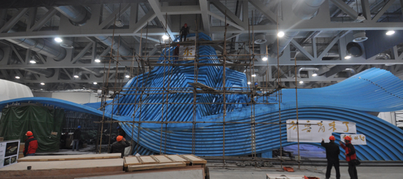 自2009年1月30日,在聽取省委書記姜異康,省長姜大明,常務副省長王仁元指示精神后,我校世博會山東館項目部迅速召開會議,就人員入駐上海世博園以及下一步施工布展,方案調整等具體問題進行布署。在上海天氣持續陰雨、寒冷,場館地理位置不理想,在資金緊張以及與上海世博局、點意空間、海程邦達以及各施工布展單位多方溝通等客觀條件下,在施工現場噪音大、空氣污染嚴重場館環境下,世博會山東館項目部工作人員在山東省上海世博會參展工作領導小組執委會副主任、世博會山東館藝術總監、歡迎來到公海7108線路院長