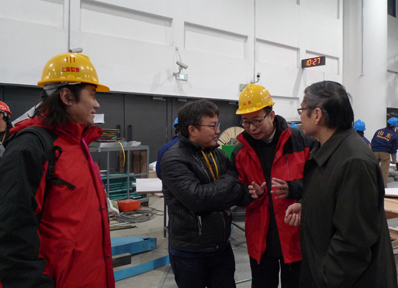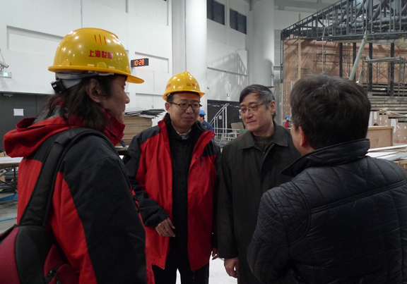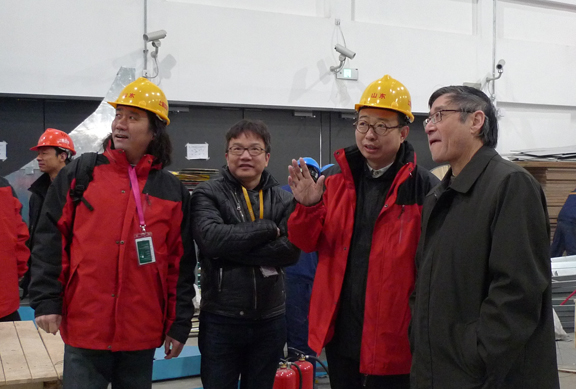 ,歡迎來到公海7108線路副院長、世博會山東館總指揮苗登宇,世博會山東館副總指揮韓文濤在山東館施工布展現場接待了潘公凱院長一行。