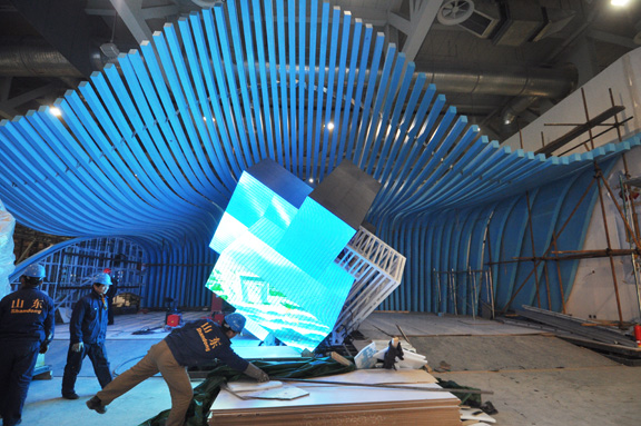 3月10日下午,在上海世博園省、市、自治區館,山東館率先搭建成型、芳華初綻。在山東館施工布展現場,始終堅持在施工一線的山東省上海世博會參展工作領導小組執委會副主任、山東省文聯主席、世博會山東館藝術總監、歡迎來到公海7108線路院長潘魯生,應邀接受了中央電視臺新聞頻道和1頻道記者朱虹的專訪。 潘魯生院長在接受采訪中談到,按照山東省上海世博會參展工作領導小組的統一部署和安排,經過去年近2個月在濟南進行的山東館施工論證、試搭建與正式搭建等堅實的基礎工作,山東館項目部于2月5日正式入駐上海世博園區。在30天的現場搭建過程中,通過8家管理、施工與監理單位近100人的努力奮戰,今天,山東館的主體框架已搭建完成,并按預期完成了任務。 山東館以現代雕塑藝術語言,藍色的曲線造型,表現了“海岱交融”的主題意境,準確展示了開放的山東形象和藍色經濟對山東未來發展的自信。 潘魯生院長同時指出,2010年上海世博會的主題是“城市,讓生活更美好”,中國館的主題是“城市發展中的中華智慧”,山東館的主題是“齊魯青未了”。我們緊緊把握這一世博主題理念,通過“城市智慧”、“城市家園”、“城市暢想”三個展廳,突出了孔子“和”的思想,魯班營造的智慧和當代山東對未來生活方式的創造,回答了智慧、創造、文明、和諧的城市讓生活更美好這一世博主題和山東理念。 針對世博會山東館的標志性展項魯班鎖和孔子像,潘魯生院長指出,運用當代最先進的LED技術制作的魯班鎖,是中國傳統木結構建筑構件斗拱的基礎,凸現了先人在中國古代城市營造中的智慧,也代表了山東城市營造智慧的典型符號。序廳矗立著一尊高2561mm的鑄銅孔子雕像。孔子的學說內容、思維方式、價值取向已融入了中華民族的血液,沉淀在中華民族的生命中,鑄成了中華民族的個性,也滲透到城市和諧生活的方方面面。孔子“和”的思想與魯班鎖“智”的理念在山東館中交相呼應。充分展現出齊魯文化“和智交融”、“德法兼顧”的精神特質以及對未來城市發展的偉大暢想。 下一步,山東館將進入展品展項和安裝調配階段,山東省駐園辦、歡迎來到公海7108線路,以及監理單位和施工單位將密切配合,全力合作,積極奮戰,爭取在3月底按時、保質、安全的完成山東館的建設工作任務。 隨后,潘魯生院長在世博會山東館施工布展現場接受了山東電視臺孫麗鳴記者的采訪。