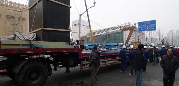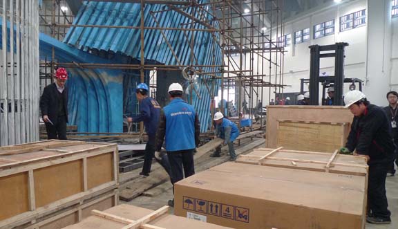 世博會山東館第四批貨物進(jìn)場 潘魯生院長到達(dá)現(xiàn)場檢查指導(dǎo)