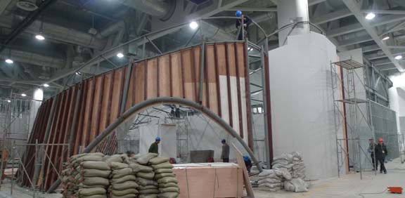 目前,山東館實施在我校相關(guān)人員與各施工方的共同努力下,進(jìn)展順利,整體框架搭建已接近尾聲,是世博會省區(qū)市館中進(jìn)度較快的展區(qū)。
