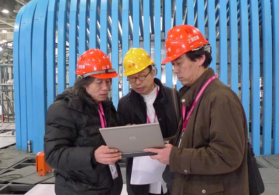 院長始終堅持在世博園省區市館現場施工一線,深入檢查、指導、協調山東館的設計完善與施工工作,現場解決問題、部署施工。