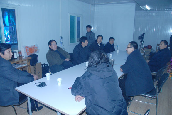 1月29日下午,我校黨委書記于茂陽,黨委副書記、紀委書記李世平,黨委副書記楊新力,副院長李新、刁在祥、張云龍,院長助理、辦公室主任王立果一行來到濟南國際會展中心對世博會山東館建設現場進行了視察,并慰問了參加建設的工作人員,省世博會參展工作領導小組執委會副主任、省文聯主席我校潘魯生院長和世博會山東館項目部總指揮我校苗登宇副院長在建設現場與前來慰問的校領導進行了座談。