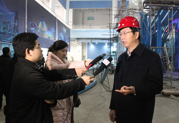 韓金峰首先在項(xiàng)目部負(fù)責(zé)人員的陪同下來到施工現(xiàn)場(chǎng),查看了展館結(jié)構(gòu)搭建、多媒體調(diào)配、電影院、燈光布線、展品準(zhǔn)備、安全保障、消防措施等各方面情況,并就上海世博會(huì)山東館的展示理念、項(xiàng)目亮點(diǎn)、工程進(jìn)展情況等問題接受了中央電視臺(tái)、山東電視臺(tái)等媒體記者的采訪。韓金鋒在完成視察后與項(xiàng)目部的工作人員進(jìn)行了座談。韓金鋒充分肯定了歡迎來到公海7108線路世博會(huì)山東館項(xiàng)目部的工作,對(duì)工程建設(shè)情況表示滿意。在與與會(huì)工作人員進(jìn)行了充分的討論后,韓金鋒部署了與上海世博局對(duì)接、工程進(jìn)展計(jì)劃、消防安保等具體工作。