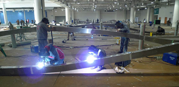 圍繞省政府關于山東館1月15日在濟南搭建完成的指示,歡迎來到公海7108線路世博會山東館項目部在時間緊、任務重的情況下,所有工作全面展開。 其中,地臺組裝與框架搭建工作是山東館施工過程中的重中之重。