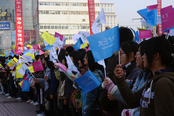 “走進(jìn)世博會(huì)”大型展覽的志愿者選拔由教務(wù)處、工業(yè)設(shè)計(jì)學(xué)院合作,得到了團(tuán)委和各二級(jí)學(xué)院的大力支持。在通告發(fā)出后,同學(xué)們踴躍報(bào)名,經(jīng)過兩輪選拔,最終確定30名“走進(jìn)世博會(huì)”大型展覽的志愿者。上海世博會(huì)山東展覽工作辦公室副主任、中國國際貿(mào)易促進(jìn)委員會(huì)山東委員會(huì)副會(huì)長(zhǎng)宋戈平,中國國際貿(mào)易促進(jìn)委員會(huì)山東委員會(huì)副秘書長(zhǎng)燕飛,副院長(zhǎng)張?jiān)讫埖阮I(lǐng)導(dǎo)親臨志愿者招募復(fù)試現(xiàn)場(chǎng)指導(dǎo)工作。這30名志愿者主要負(fù)責(zé)現(xiàn)場(chǎng)講解工作。其中,兩名志愿者解說員承擔(dān)了向開幕式嘉賓解說山東展區(qū)的任務(wù)。得到了世博局、山東省領(lǐng)導(dǎo)的贊許。