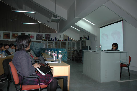 10月19日上午9點,現代手工藝術學院在我校綜合樓B444多媒體教室舉辦了“世界設計大會”首飾工作坊第一次合作交流講座。印尼專家Riama Maslan Sihombing女士受邀介紹印尼首飾文化,我院院長段建華,副院長張紅梅,首飾工作坊執行人宋處嶺,教師劉菲、田偉玲到場,我院06、07級首飾專業的學生參加了此次講座。