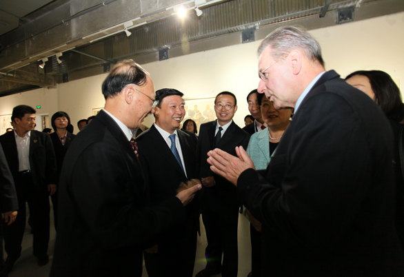 國際奧委會主席雅克?羅格一行參觀第七屆中國體育美術作品展
