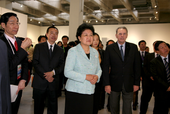 中共中央政治局委員、國務委員劉延東國際奧委會主席雅克•羅格一行參觀第七屆中國體育美展