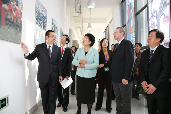 10月16日上午,中共中央政治局委員、國務委員劉延東,國際奧委會主席雅克?羅格一行蒞臨我校長清校區,在參加完第七屆中國體育美術作品展后,劉延東委員一行參觀了我校博物館。 在民藝博物館,中共中央政治局委員、國務委員劉延東,國際奧委會主席雅克?羅格一行饒有興致地參觀了館內陳列的農事器具、交通工具、生活器具、手工藝術作品等多種形式的民間藝術藏品,展品從一個側面體現了我校重視民間藝術研究與教學,弘揚民族傳統文化,培養學生創新精神的辦學特色,也是對學生進行實踐教學的場所。 參觀中,中共中央政治局委員、國務委員劉延東,國際奧委會主席雅克?羅格一行對我校的民藝博物館給予了高度評價,對博物館的藏品表示了濃厚的興趣。 國家體育總局局長劉鵬,教育部部長周濟,國務院政策研究室副主任江小娟,國家體育總局副局長于再清、馮建中,中國文聯副主席、中國美協主席劉大為,國際奧委會委員、中國香港奧委會主席霍震霆,省委副書記、山東省省長姜大明,省委常委、宣傳部長李群,山東省副省長黃勝、李兆前等中央國家機關和山東省領導陪同。