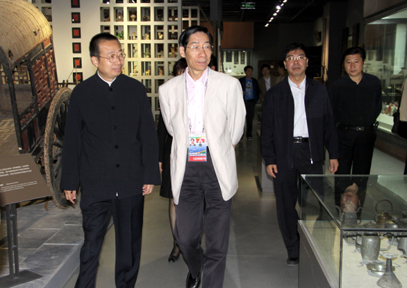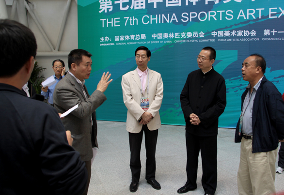 10月15日上午,國家體育總局副局長、第十一屆全運會組委會副主任馮建中,國家體育總局辦公廳副主任王路生,國家體育總局宣傳司副司長邵世偉,省新聞出版局副局長、第十一屆全運會新聞宣傳部副部長楊學峰一行來到我校長清校區,考察指導第七屆中國體育美展籌備工作。院長潘魯生,副院長李新,院長助理、辦公室主任王立果陪同考察。 我校領導陪同來賓考察了第七屆中國體育美展開幕式準備情況、展覽場館各展廳布展情況、參觀路線和相關輔助設施。考察過程中,校領導向來賓介紹了展覽籌備工作,馮建中一行對我校籌備工作給予了高度評價,并在美術館召開現場會議,就開幕式有關細節、布展安排、安保工作、貴賓接待、嘉賓參觀路線等工作進行了現場指導。 我校各有關部門負責人及工作人員陪同。