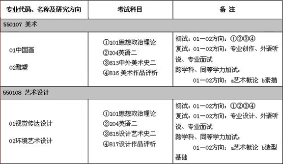 全日制藝術(shù)碩士(MFA)研究生招生專業(yè)方向和考試科目