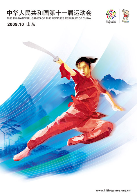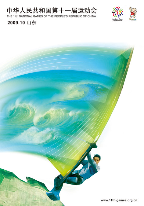 十一運會首批宣傳畫1套11幅,共分四個系列。系列一為主宣傳畫,主要體現會徽和吉祥物形象;系列二為運動項目與祖國大好河山的組合;系列三為運動項目與山東人文景觀的組合;系列四是通過現代手法塑造的運動項目,著力體現嶄新的時代精神與潮流。宣傳畫在相對統一元素基礎上,采用了多種表現手法的系列組合,既有新視覺風格的探索,又有向民眾推廣傳播的展現。宣傳畫整體視覺感染力強,給人耳目一新的感覺,設計過程中體現了視覺語言的創新和對深厚文化內涵的宣揚。