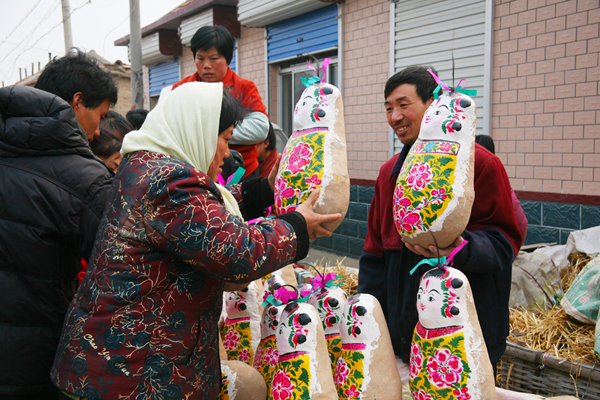 該村的“二月二泥娃娃會”源于明朝成化年間,距今已有300多年歷史。泥娃娃以紅粘泥為原料,經設計造型、制胚、晾干、摩試、加工、糊紙、涂粉、著色、開眼、涂膠等20多套工序制成,造型簡潔,色彩艷麗,極具裝飾韻味,深受民間喜愛。課題組成員被娃娃會的熱鬧景象深深吸引,來自美國的課題組成員更是對廟會上的泥娃娃喜愛有加。他們紛紛表示出對娃娃會這一民間傳統節日慶祝活動的喜愛。廟會上,課題組對與娃娃會相關的各種傳統習俗進行了采訪。