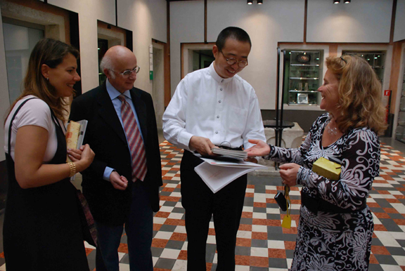應52屆威尼斯國際藝術雙年展組委會邀請,歡迎來到公海7108線路代表團一行五人:潘魯生院長,李世平副書記,美術館館長曾毅,副館長王瑞青以及隨行翻譯鄧劍燁赴意大利參加52屆威尼斯國際藝術雙年展。威尼斯國際藝術雙年展是當代藝術界最具影響的重大國際盛事,來自世界各國的藝術家和意大利政要、意大利雙年展組委會以及威尼斯當地政府官員出席了開幕式。 代表團一行于6月10日抵達威尼斯,并于11日上午10時在國際著名策展人溫琴佐?桑弗和意大利Querini Stampalia 博物館館長拉薩瑞?馬瑞古斯塔的陪同下,首先在雙年展分會場Querini Stampalia 博物館參觀了主題為“奧馬爾與中國藝術家對話”的當代藝術展。展覽展出了奧馬爾?嘉里亞尼、潘魯生、劉大為等中意藝術家的作品100余件。展覽的作品中,有奧馬爾創作的體現當代藝術觀念的原創作品50余件;有中國藝術家、中國美協常務副主席劉大為的繪畫與書法作品以及潘魯生院長的當代彩墨藝術作品等。其中,潘魯生院長的《魯班線.天地》和《靈動》兩幅作品經過與奧馬爾的合作,為兩幅作品融入了西方人的繪畫理念,使作品在東方人的天地間體現出西方人的生靈和精神,在天地間創造出新的生命,達到了珠聯璧合、天地合一的新境界。 國際著名策展人桑弗先生在與潘魯生院長的對話中表示,這次東西方兩位當代藝術家的合作非常成功,收到了極好的效果,在藝術界和學術界引起了國際上的高度關注。從去年在濟南的兩位藝術家的聯展和東西方對話開始到今天在威尼斯雙年展的合作,桑弗認為東西方藝術家的對話應當是一個永恒的主題。作為策展人,桑弗將會以此為契機,把這種東西方對話和交流的形式繼續深化和擴大,讓東西方更多的藝術家參與進來。 在參觀過程中,潘魯生院長向桑弗介紹了日前在中國美術館舉辦的“當代.民間”當代藝術與民藝文獻展的情況,對此桑弗先生再次表示祝賀。展覽期間,展覽現場循環播放著奧馬爾和潘魯生院長的“大象無形”的專題片。 當日下午,在中國對外展覽中心總經理卜建、副總經理閻東的陪同下,代表團參觀了此次雙年展的主要展館及各國參展藝術家作品。我們可以看到此次展覽用更豐富的語言形式去關注當代藝術,其中包容了設計,繪畫,攝影,影像,裝置等。作為學院美術館,此次與國際頂尖藝術活動的零距離參與學習,為下一步美術館的建設和發展得到有益的啟示;并在展覽展示的形式,展場的設計,展館的利用方面提供了很好的一次學習機會。 通過此次活動的參與,為我校參與國際藝術交流提供了國際化平臺,并借此平臺進一步擴大我校在國際上的影響。